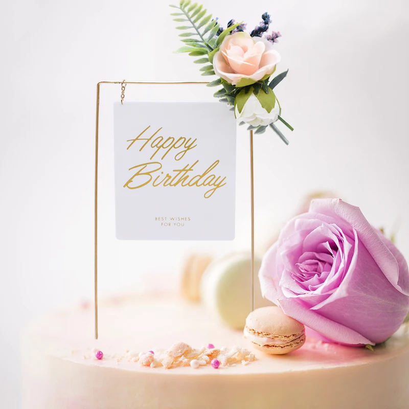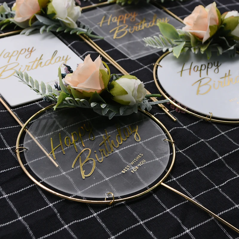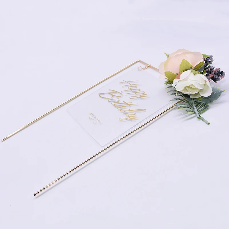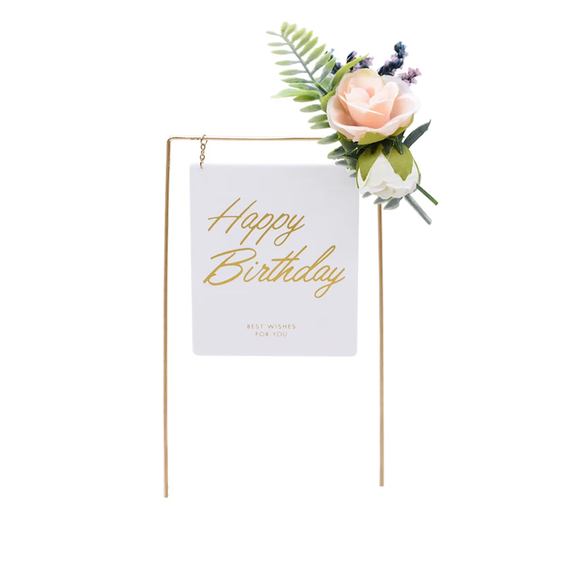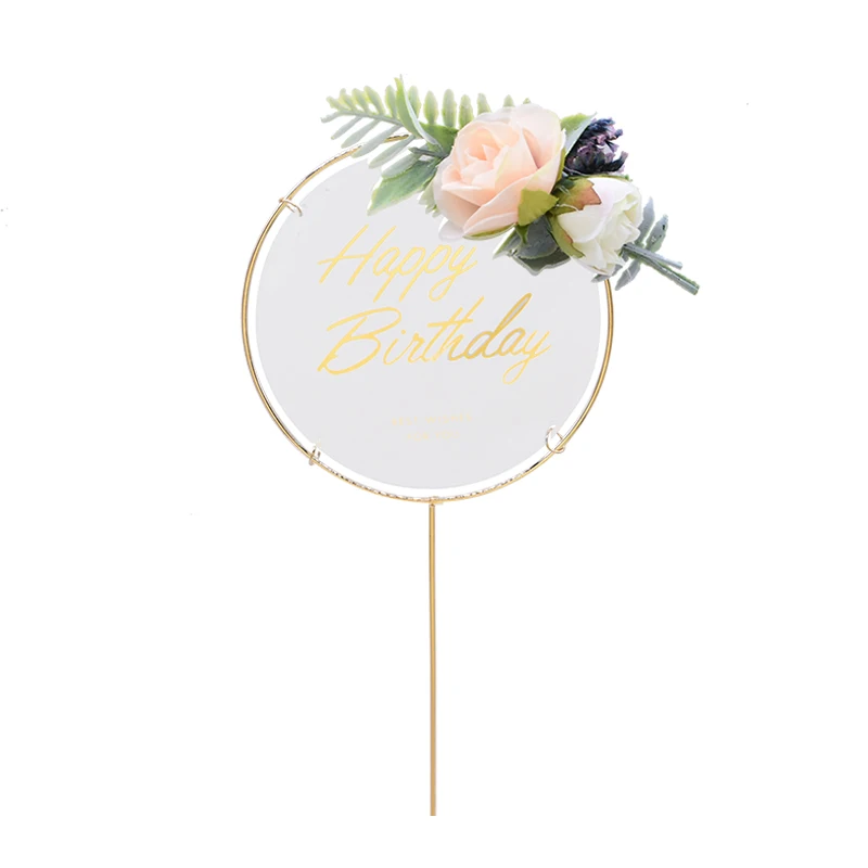 1Pcs Metal Happy Birthday Cake Topper Mini Basket Artificial flowers Cake Toppers For DIY Baby Shower Birthday Party Decoration