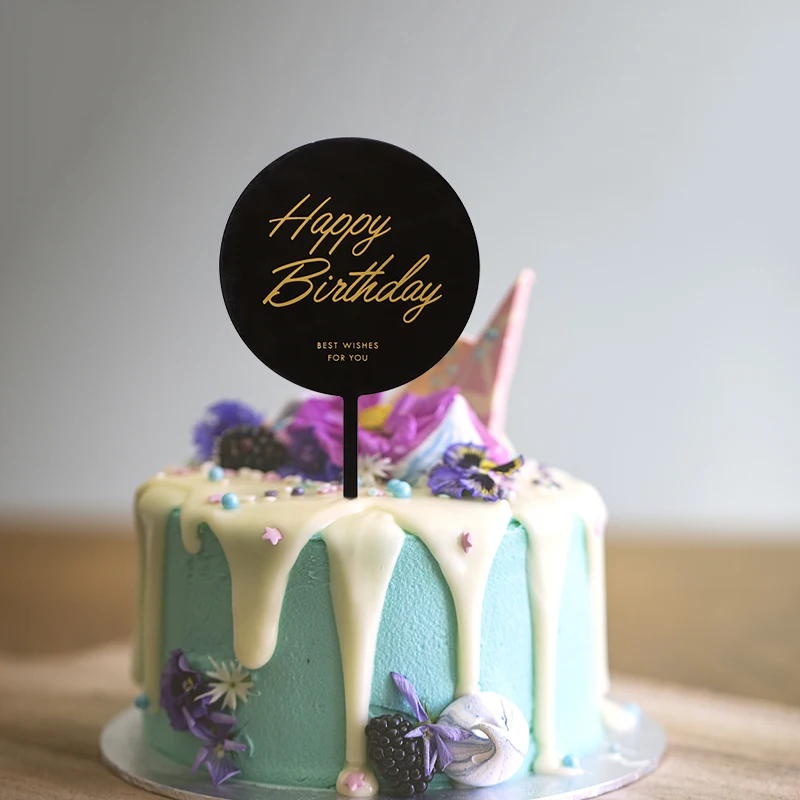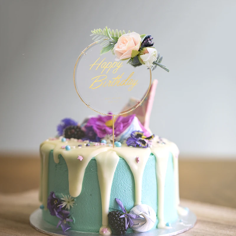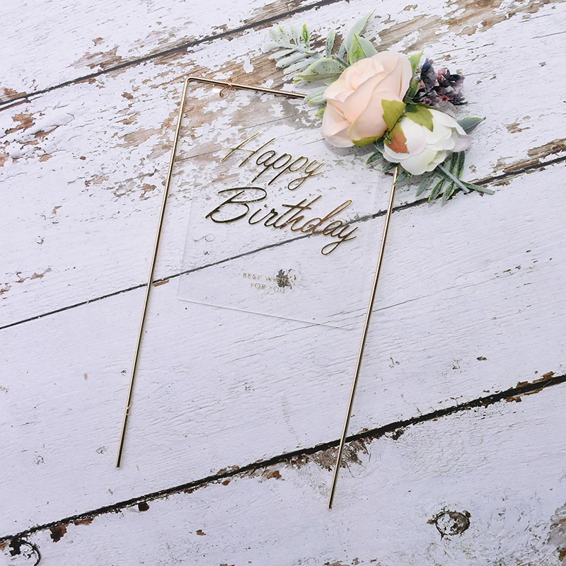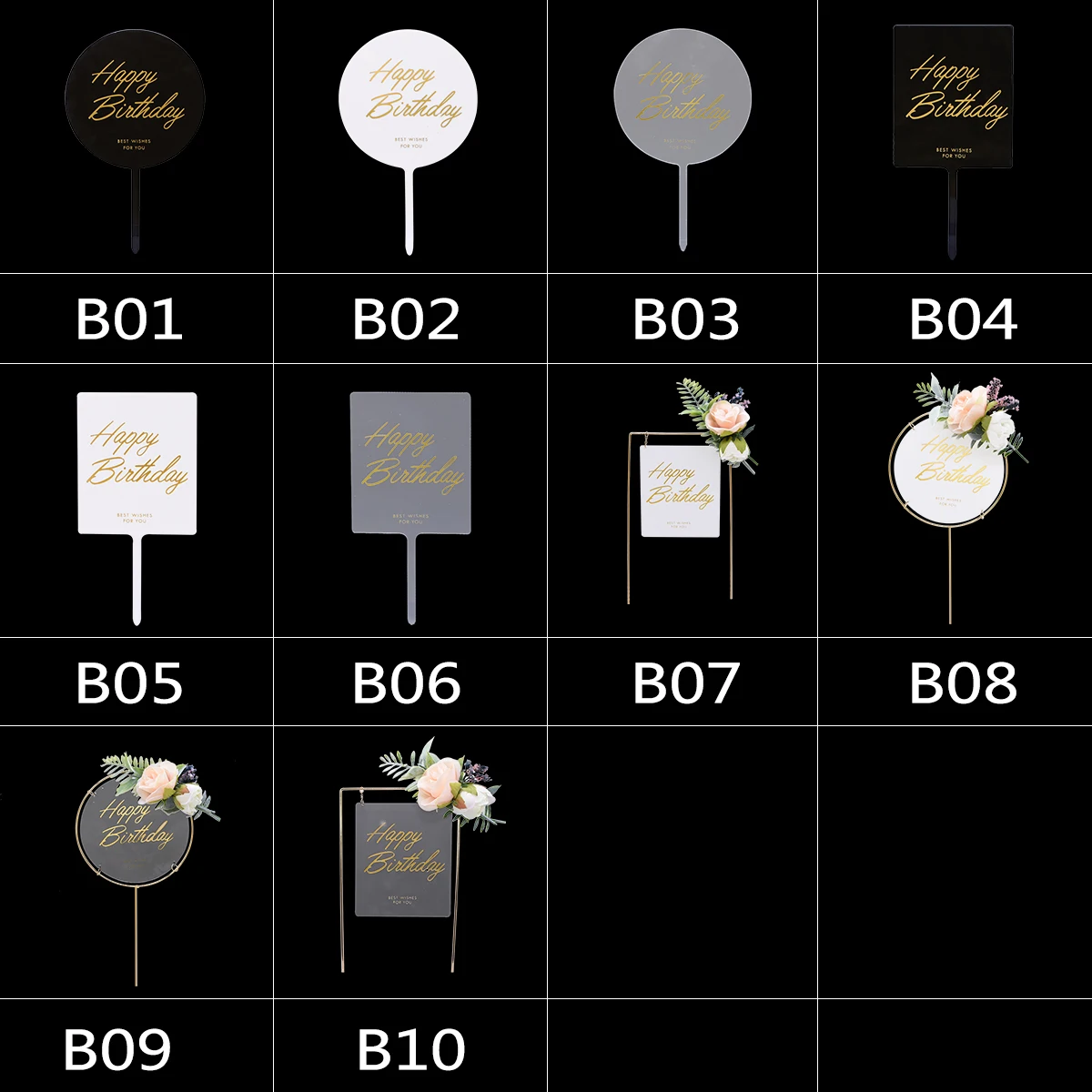 1Pcs Metal Happy Birthday Cake Topper Mini Basket Artificial flowers Cake Toppers For DIY Baby Shower Birthday Party Decoration