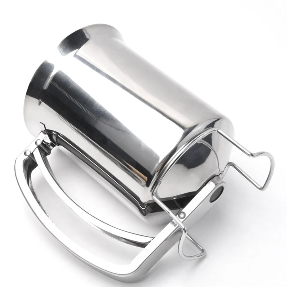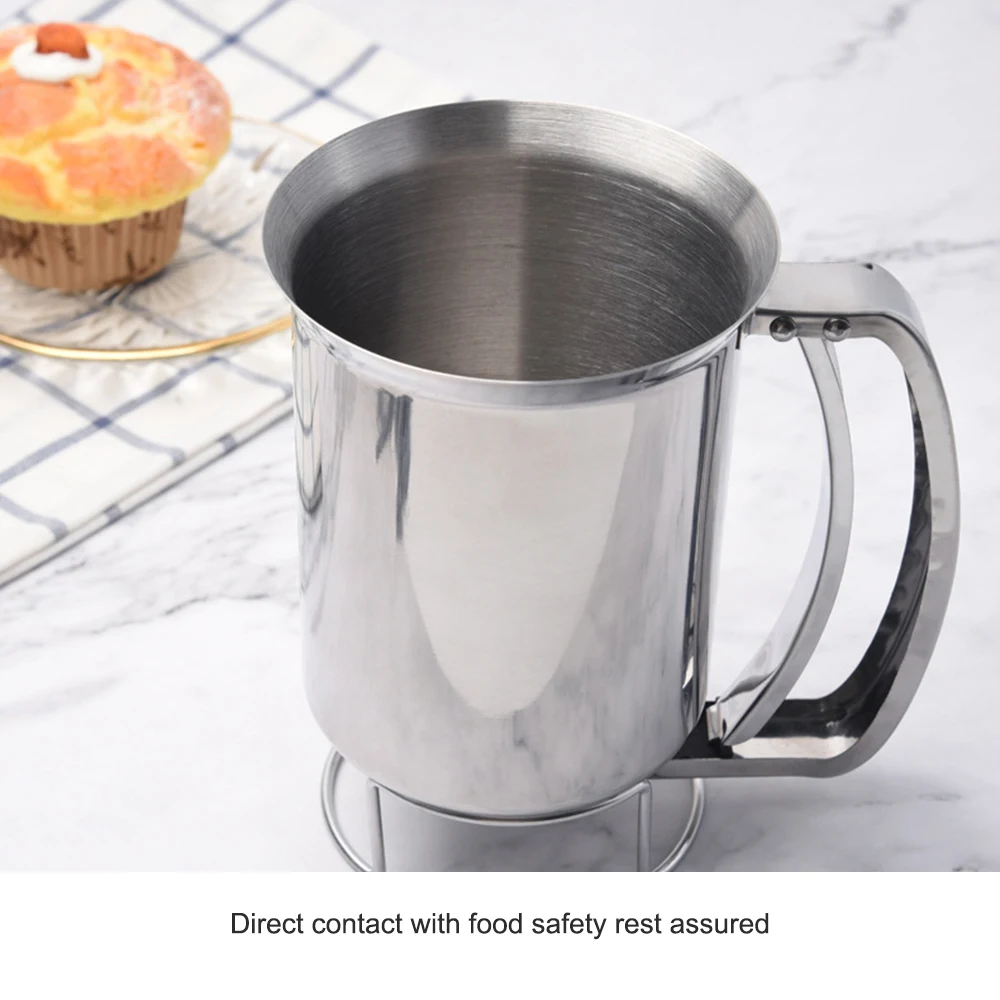 The pancake batter funnel is made of high quality 430# stainless steel, which is corrosion resistant, high temperature resistant, anti-rust, tough, hard and wear resistant. The pancake batter funnel is not only durable but also can be easily clean under water directly.
