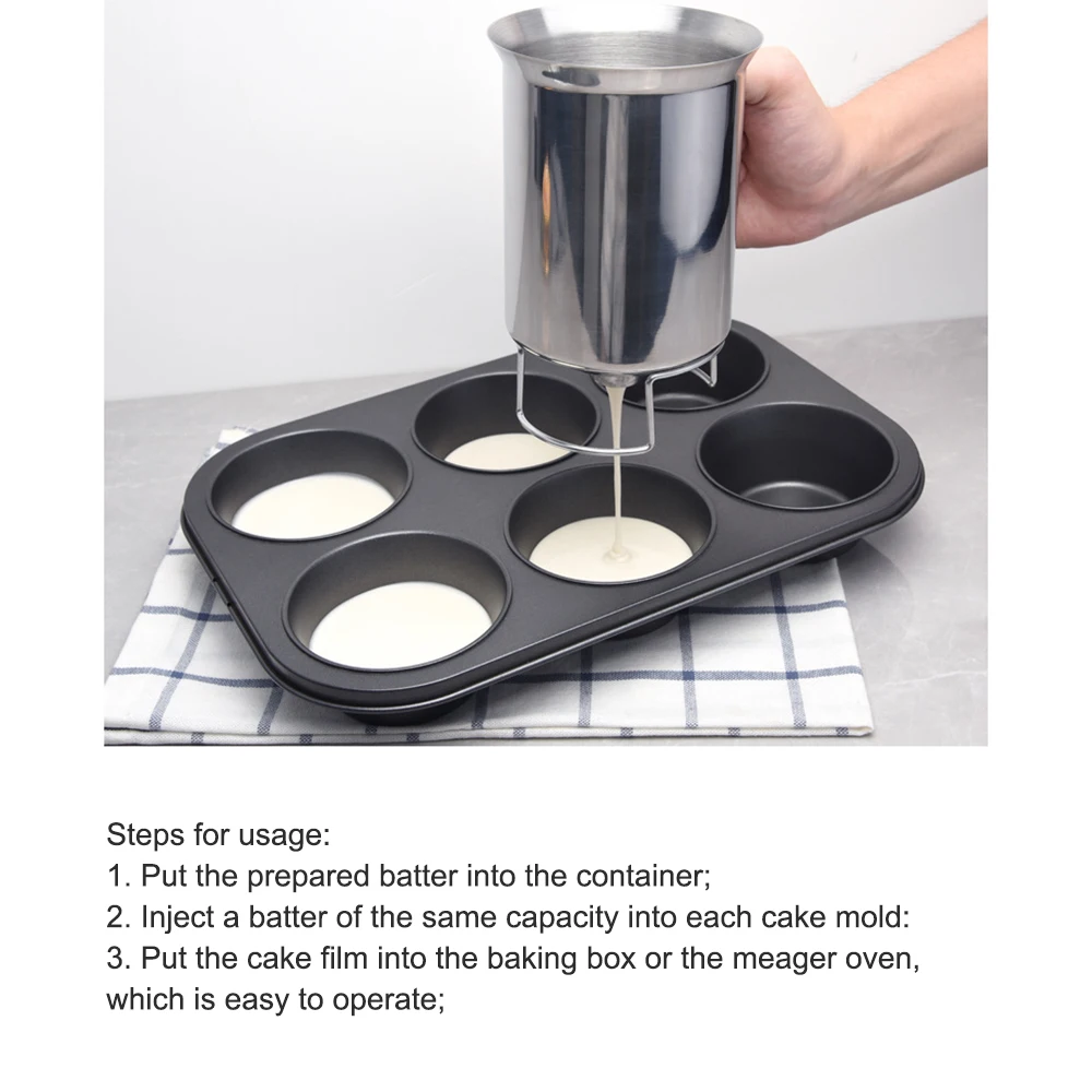 The pancake batter funnel is a good helper in kitchen, which can help you to transfer suitable volume batter to the specific place as you want. The pancake batter funnel is suitable for baking cupcakes, muffins, crepes, waffles and so on.