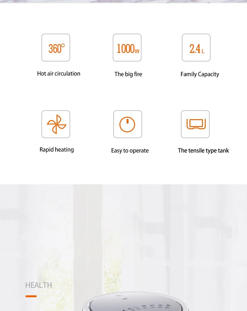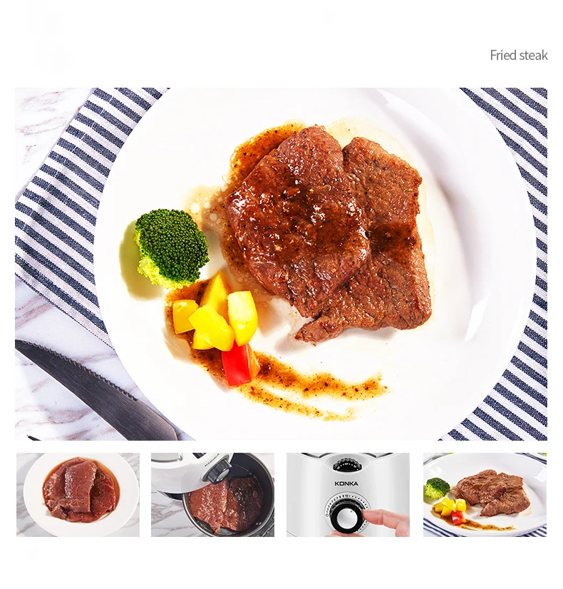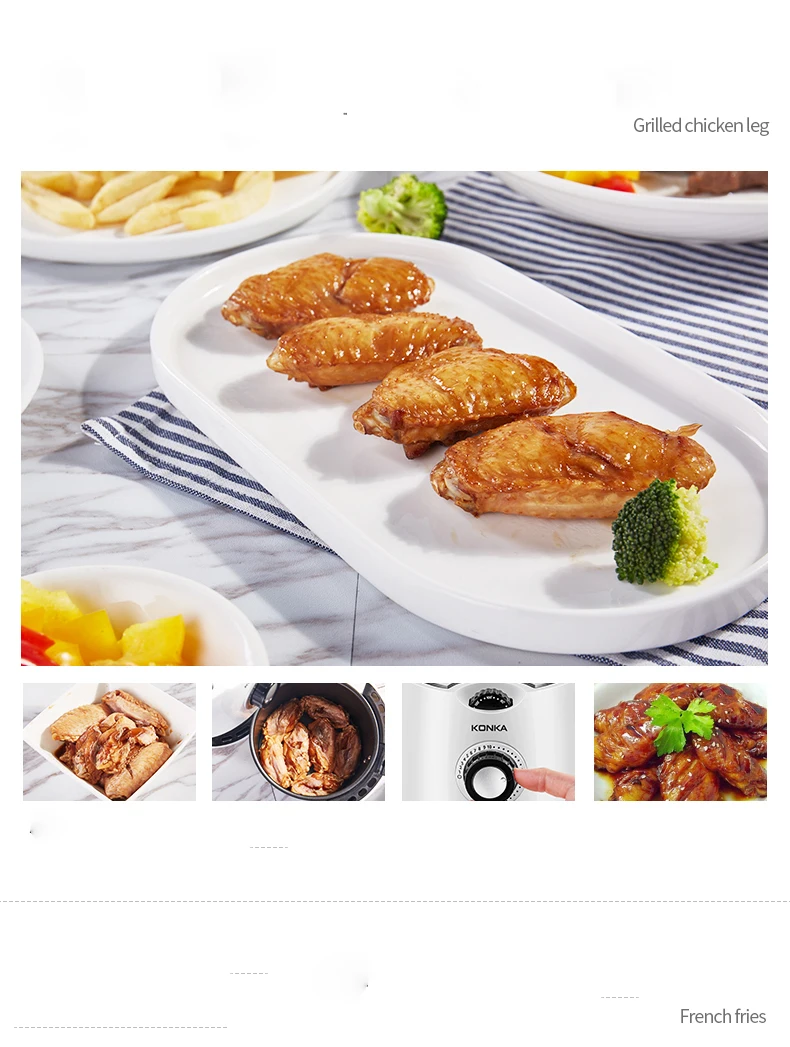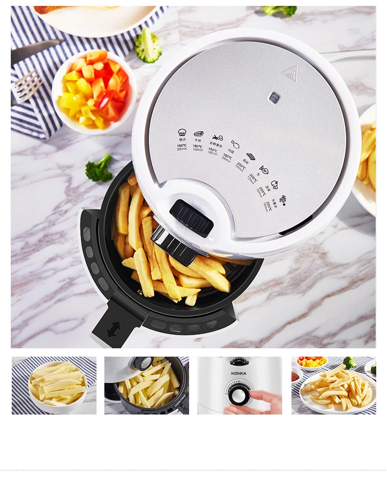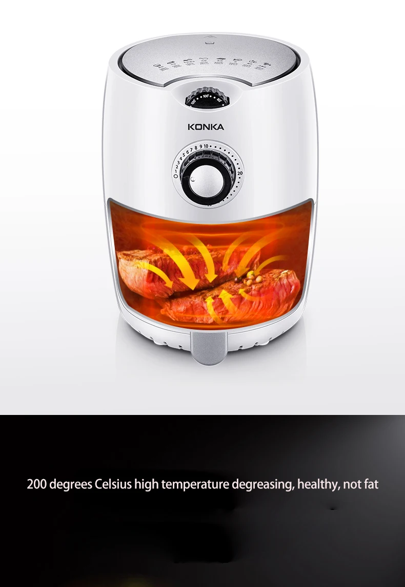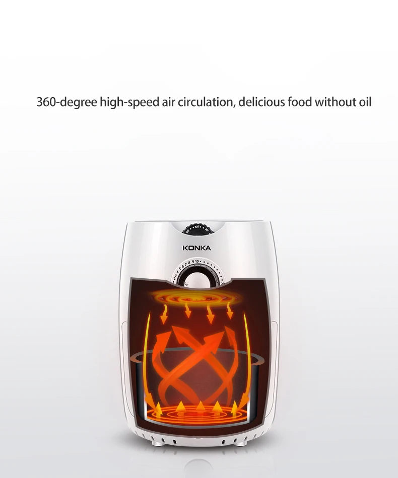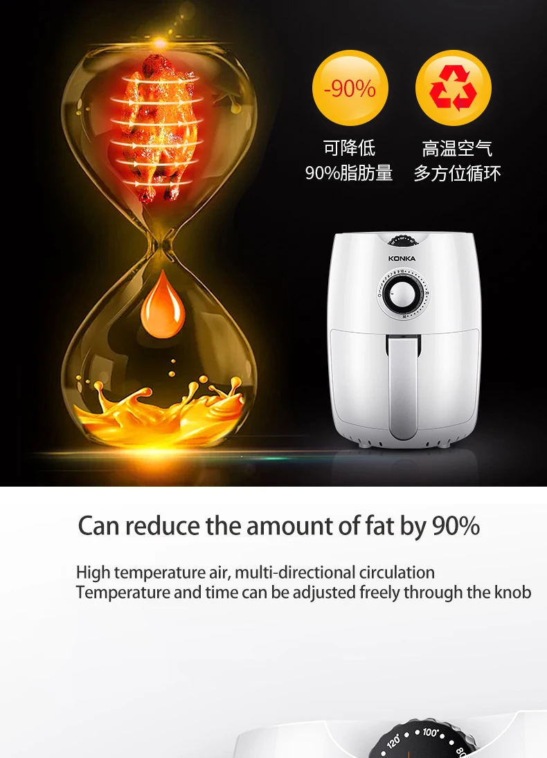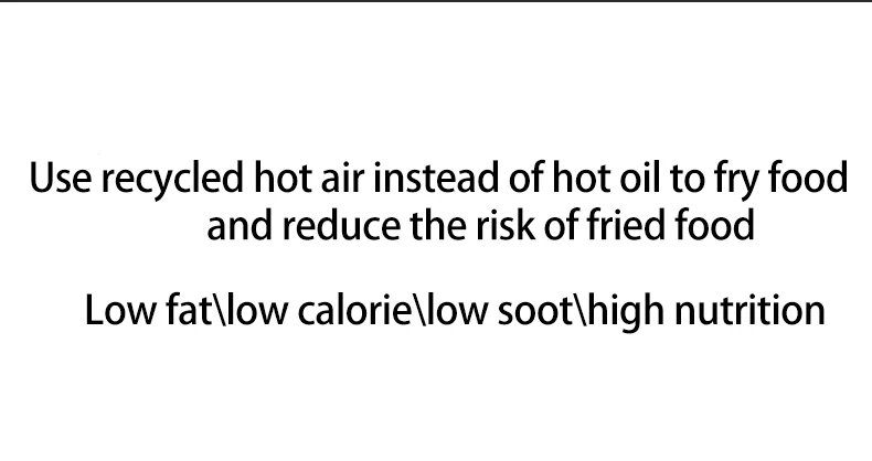 Air fryer with rapid hot air circulating system, enable your food cooking in all directions and evenly heated with little oil to no oil added. LESS FAT,MORE HEALTHIER.