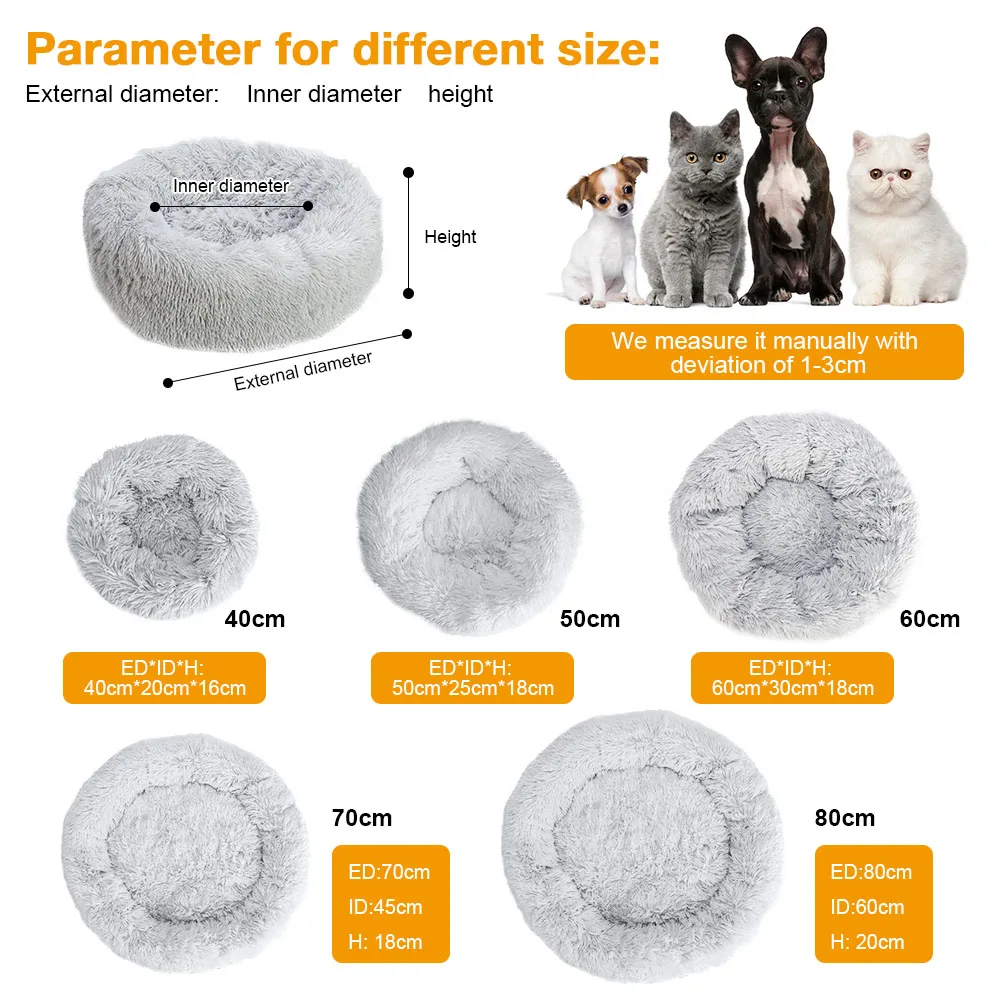 Long Plush Super Soft Pet Bed Kennel Dog Round Cat Winter Warm Sleeping Bag Puppy Cushion Mat Portable Cat Supplies 46/50/60cm
