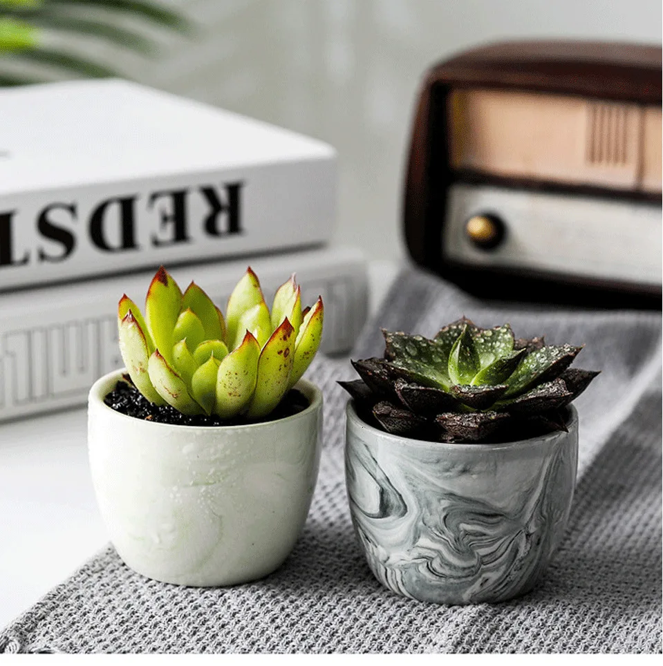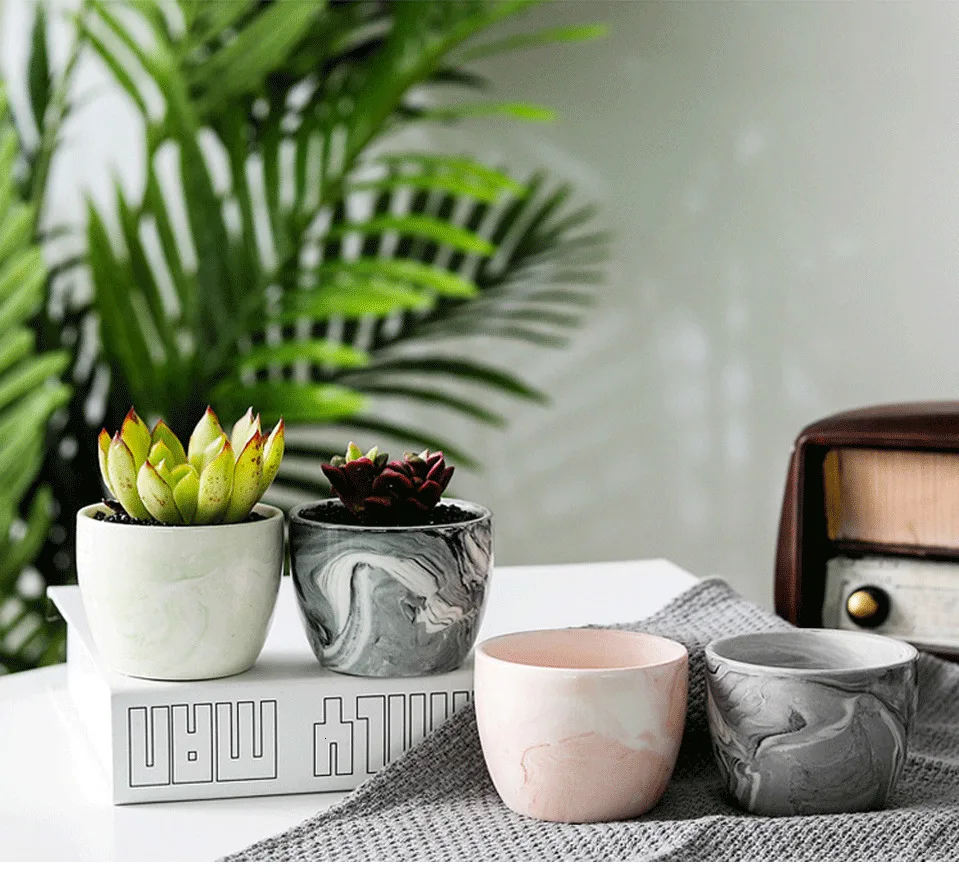 Simple Home Ceramic Flower Pot Multicolor Marble Pattern Fleshy Flower Pot Home Bird Spikes Gardening Christmas Decorations